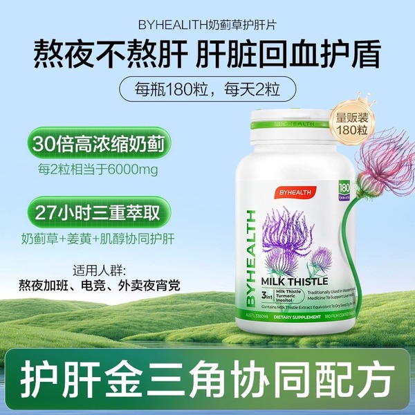 【下单返8元国际购物金,91.56-8元=83.56元】奶蓟草护肝片足足120颗,加班熬夜喝酒人士常备,不怕爆肝。4大营养成分,打造肝脏天然屏障,奶蓟草,姜黄,肌醇,硫辛酸,天然精华,排毒养肝!【赠运费险】
