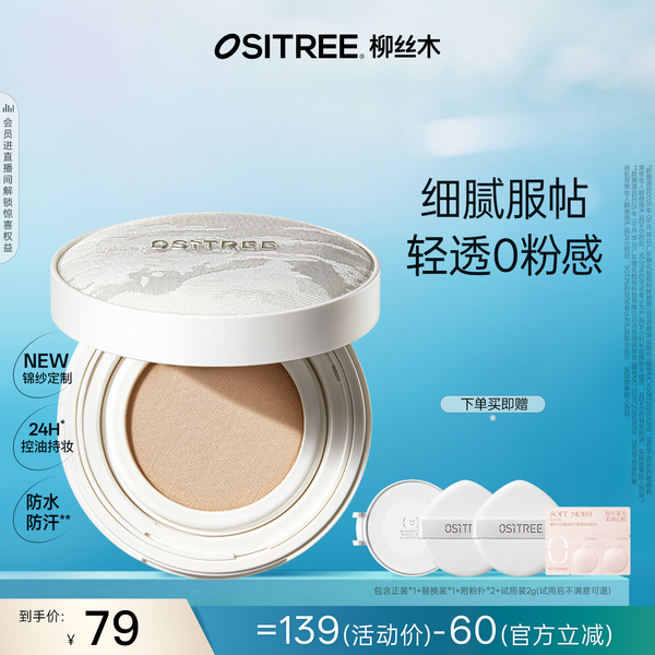 【参加淘.宝秒杀。109-秒杀直降52.4-淘金币3-天降红.包3,下单蕞低50.6赠送正装*1+替换装1+粉扑*2+体验装2g】柔雾底妆首.选!遮瑕力强但妆感轻,云雾妆感超自然。保湿修颜,贴肤不卡粉。