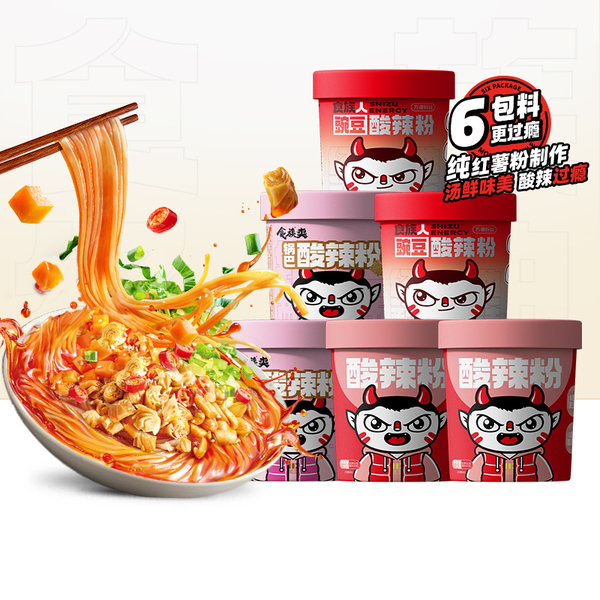 食族人酸辣粉桶装酥脆花生红薯粉方便夜宵冲泡