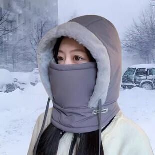 帽子男款冬季加绒加厚雷锋帽保暖东北棉帽防寒骑行面罩围脖一体