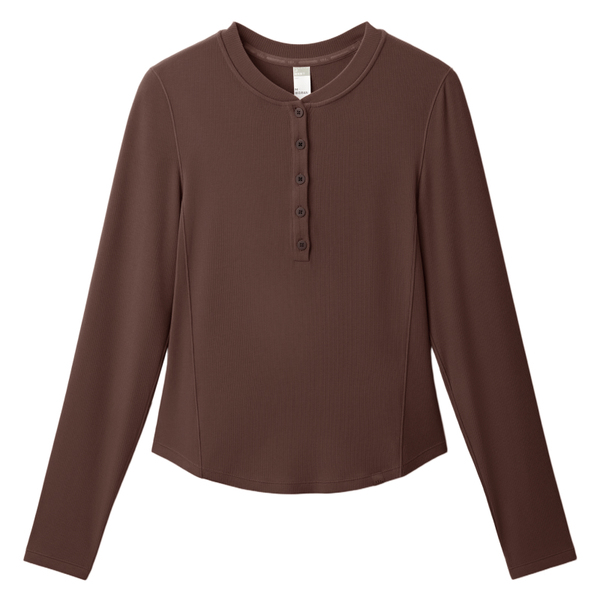 蕉下亨利衫女长袖T恤v领秋冬修身保暖低领打底衫半开领白色上衣