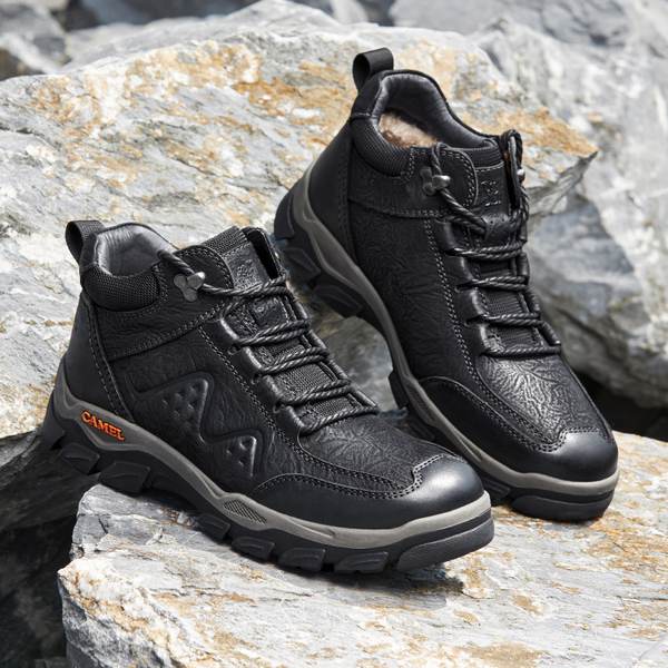 骆驼男鞋冬季新款高帮鞋加绒保暖东北雪地靴男棉鞋户外徒步工装靴