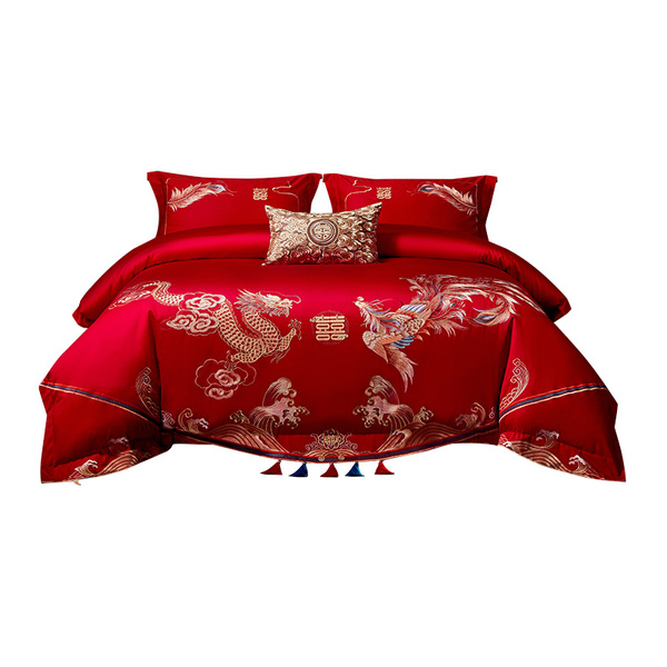 蚕花娘娘婚庆四件套全棉结婚新婚婚房喜被床上用品嫁妆礼物