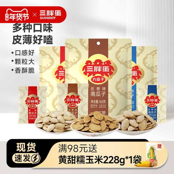 三胖蛋旗舰店南瓜子原味160gx3袋内蒙产五香盐焗味