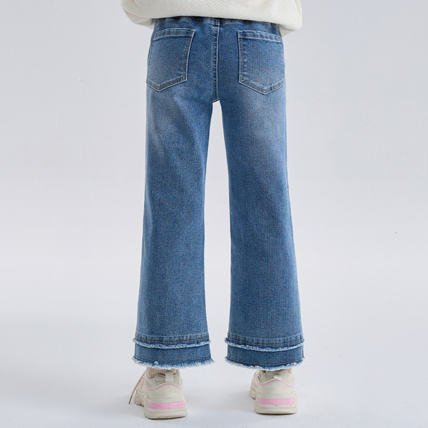 女童喇叭裤,毛边设计超时尚,牛仔面料舒适又耐穿。阔腿裤型,显腿长又显瘦,小公主穿上超有型