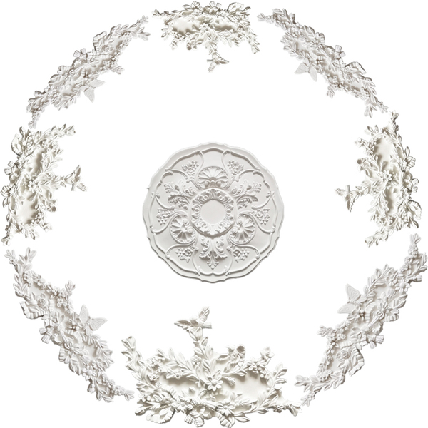 法式石膏花角镂空小鸟天花吊顶造型欧式轻奢石膏线条异形非PU灯盘