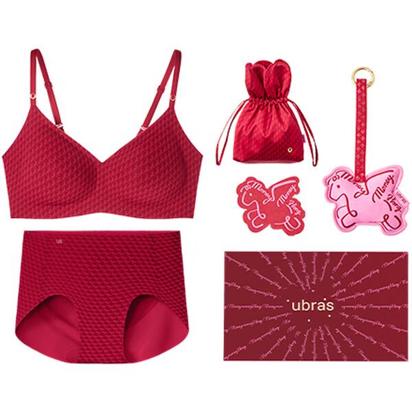 ubras生肖马年大红盒无尺码本命年红色内衣套装2026年新款文胸女