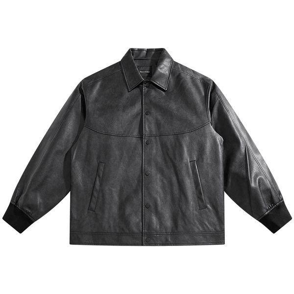 太平鸟男装夹克春阔版pu皮外套潮牌复古宽松翻领质感插袋外套潮