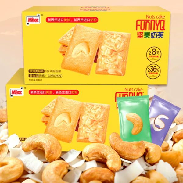 【整箱26包】Mixx厚切坚果芙,每一个饼干上面都有一颗巨大的坚果,酥脆可口,独立包装,真的巨巨巨好吃