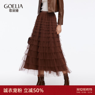 歌莉娅秋季高腰网纱蛋糕半身裙女