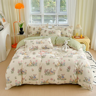 ins裸睡纯棉四件套A类小清新全棉床单被套床笠款床上用品宿舍