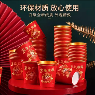 2026马年金箔纸杯一次性红色加厚防烫家用