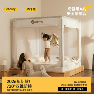 森禾鹿儿童防摔蚊帐2026新款婴儿家用全底卧室母婴加厚免安装支架