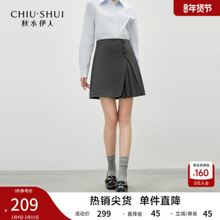 三福格子长裙女2025新款冬季气质流苏摆不规则半身裙子女装509092
