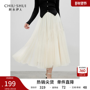 Basic House百家好羊毛白色半身裙女秋冬加厚a字伞裙中长款裙子